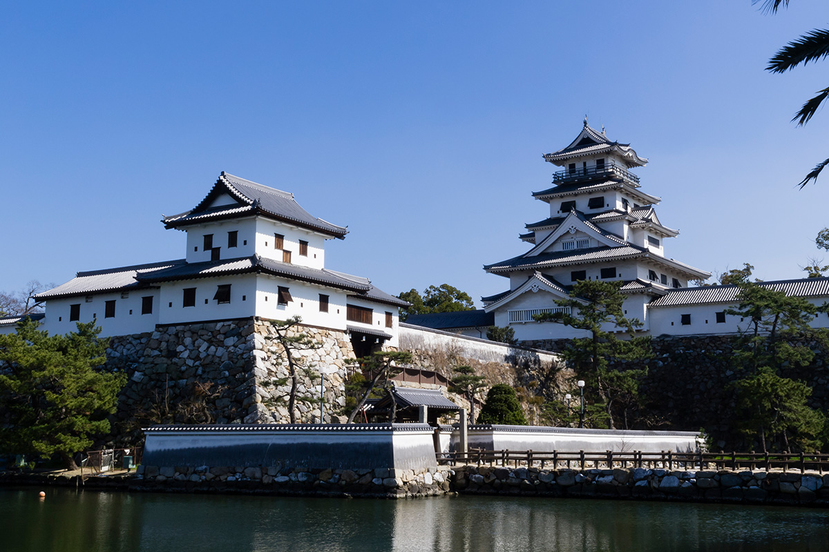 今治城は、関ヶ原の戦いの功績により伊予半国20万石を領した藤堂高虎が、慶長7年(1602)に瀬戸内海沿いに築いた平城です。別名「吹揚城」とも呼ばれ、海水を引き入れた堀や船入を備えた日本有数の海城として知られています。明治維新後に建物の多くは取り壊されましたが、昭和以降に天守や櫓などが再建され、現在は今治を代表する歴史スポットとなっています。